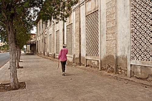Il viaggio in terra Eritrea è un viaggio della memoria, un viaggio nel tempo, un viaggio nel passato, un viaggio nella storia ma anche un viaggio nel futuro. Un lungo viaggio che racchiude dentro di se mille percorsi tortuosi. In ogni istante trascorso a calpestare questa terra sono riaffiorate reminiscenze legate a un passato ormai sepolto nei meandri reconditi della memoria. Da quel giorno sono trascorsi oltre quarant'anni quando, inconsapevoli prendevamo per l'ultima volta un aereo che decollava da Asmara. Per la prima volta diretti in Italia. Eravamo solo dei bambini e tutto sembrava normale, ci trasferivamo da una terra ad un'altra, da un mondo ad un altro senza la minima preoccupazione. Lasciavamo il paese dove eravamo nati senza grossi rimpianti. Avevamo una vita di fronte a noi e soprattutto eravamo stati abituati fin da piccini a volare sopra le nuvole. Non ho mai sentito forte il richiamo del paese dove sono nato, nonostante vi si fossero installati in epoche ormai remote, buona parte dei miei familiari. Da quel giorno sono trascorsi molti anni ma soprattutto molte guerre che hanno turbato il meraviglioso paese. Seguivo con attenzione i grossi cambiamenti che avvenivano in Eritrea ma sempre con fare abbastanza distaccato, fino a quando un giorno pensai che prima o poi sarei voluto tornare nella città dove ero nato. Era solo un pensiero non una esigenza. Sarei tornato ad Asmara soltanto se mi si fosse presentata un occasione speciale, unica, irrinunciabile. Non era una necessità assoluta e quindi potevo attendere quel momento senza fretta. Intanto il tempo passava e il desiderio aumentava. Sarà anche che questo tempo che corre veloce, faceva riaffiorare alla memoria vecchi ricordi sottoforma di immagini sempre più sbiadite e di profumi impressi nella memoria sempre meno profumati. Tutto accade senza nessun preavviso, senza che facessi nulla affinchè si verificasse. Ricevo da un carissimo amico l'invito a partecipare alle riprese per un documentario sul vecchio treno costruito dagli italiani in Eritrea. Era arrivata l'occasione che attendevo. Come tutti i sogni che improvvisamente si materializzano, anche questo ha avuto una trafila infinita; dal giorno in cui mi è stato proposto di partire al giorno in cui mi sono seduto sul volo per Asmara sono trascorsi diversi mesi e una infinità di vicissitudini. Più di una volta quel sogno si è dissolto nel nulla e le certezze tornavano ad essere sogni. Un venerdì, improvvisamente, il sogno diventa realtà. - Mi chiama Salvatore e mi dice: sabato dobbiamo partire! Non abbiamo tempo per decidere nulla di diverso. Finalmente ci hanno concesso i visti. - Nessuna esitazione. Non c'è tempo per pensare. Si parte! Milano, Roma, Cairo e finalmente Asmara. Finalmente Asmara Mi sveglio la mattina sotto una luce accecante che filtra attraverso le tende dell'albergo dove alloggiamo. E' stato sufficiente spalancare la finestra per ricevere una spruzzata di aria frizzante ad invadere la camera. Il profumo dell'aria pulita e la luce abbagliante di un cielo terso del mattino asmarino, li avevo dentro senza averli mai scordati. Riaffiorano. Esco per strada e incontro quella luce unica che modella lunghe ombre. Eccolo un altro ricordo anche questo sopito nella memoria. Le ombre di Asmara si riflettono ovunque. Giochi di luci e chiaroscuri che ricordano i quadri di certi pittori illuminati di metà '900 in cui spazi e linee dipingono sui muri lunghe ombre metafisiche di affascinanti architetture coloniali che spaziano dallo stile razionalista al déco, dal liberty al futurista e al neoclassico.
