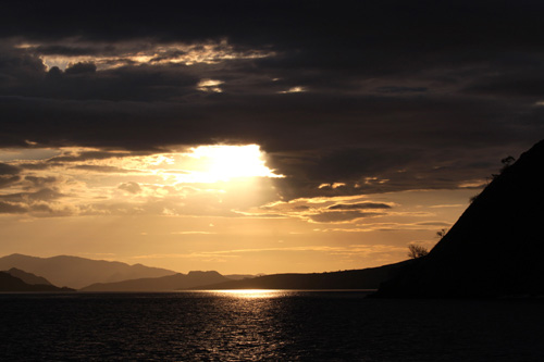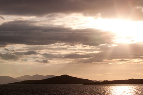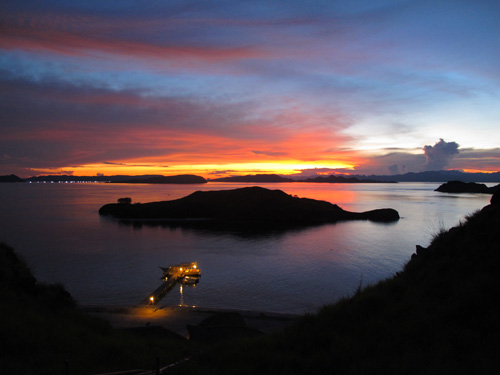 Alle spalle si innalza la zona montuosa dell'isola di Sebayur Besar che nel periodo estivo si colora di giallo oro con residui di chiazze verdi, ultimi ricordi della stagione invernale. Sebayur Besar si trova proprio sulla linea di confine, ai margini dell'arcipelago di Komodo. Le isole dell'arcipelago sono davanti ai miei occhi e si perdono verso l'orizzonte. Con il calare della luce inizia quel gioco di forme mutevoli che ne modifica i connotati a secondo dell'inclinazione dei raggi. Sebayur Kecil che si trova poche centinaia di metri a nord ovest, si dipinge prima di un rosa brillante quasi accecante, trascorrono solo pochi secondi e il rosa si tramuta in arancio e poco dopo l'isola colora di un rosso fuoco. E' la magia della luce che a queste latitudini gioca con la nostra fantasia e ci regala immagini senza tempo. Sono stanco ma non sto sognando. E' tutto vero!