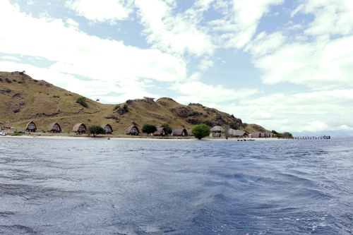 E' solo questione di punti di vista, di angolazioni dalle quali le si osserva per vederle prima ben allineate una dietro l'altra e poco dopo disseminate disordinatamente sulla piattaforma marina. Il rumore del vecchio motore diesel scandisce il tempo con regolare continuità, simile al borbottio di un anziano che ripete sempre le stesse frasi. Va avanti lento ma procede. E' forse questo il primo segno di resa al nostro tempo, il segnale che in questo angolo di paradiso terrestre il tempo non corre ma scorre lento e ritmico come questa barca, come le onde che si materializzano e poi scompaiono. A questa velocità posso godere appieno i dettagli e le sfumature delle isole. Inizio a studiarle e a cercare di riconoscerle una ad una mentre iI tempo passa. Il cielo è tappezzato da enormi nuvole bianche come il latte che si muovono sospinte dal vento dell'altitudine. Il paesaggio è vivo e mutevole anche grazie alla forte luce che trapassa i nuvoloni e pennella di chiaro scuri le isole deserte. Improvvisamente il borbottio del vecchio motore riduce il suo lamento, mi guardo intorno ma non percepisco nulla di diverso dal paesaggio visto fino a quel momento. Ho davanti a me nuove isole, nuove forme, nuovi colori ma nulla che faccia presagire la presenza di un centro abitato. Una voce in un inglese molto stentato scandisce la parola : l'isola sulla quale gli amici Stefano e Antonello hanno costruito il Komodo Resort realizzando il sogno della vita. La prima sensazione una volta individuate le originali casette che compongono il Resort è che Stefano e Antonello siano riusciti ad inserirlo talmente bene nel contesto dell'ambiente che risulta davvero difficile individuarlo. E' il primo grande pregio di questo luogo fuori dal tempo: essere invisibilmente discreto, così timido da volersi confondere nella natura di questa isola che a secondo della stagione muta i suoi cromatismi: a volte duri come i colori dell'estate a volte tenui come i colori della primavera. Il posto è incantevole, essenziale, nulla appare fuori posto e fuori luogo. Il Komodo Resort si sviluppa lungo la striscia di spiaggia di sabbia fine che corre da est verso ovest per una lunghezza di circa 700 metri.