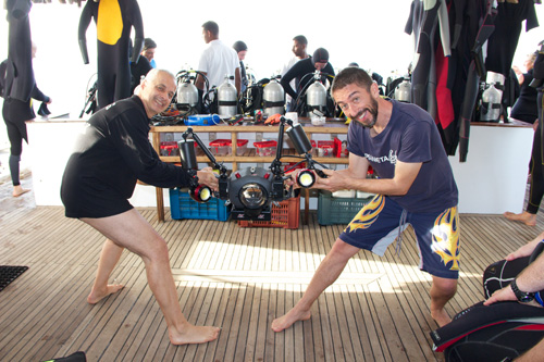 L'arrivo in barca, per chi parte da Milano, è intorno alle ore 15:30 del pomeriggio. La prima impressione dell'Aldebaran è quella di una barca appena uscita dal cantiere, colpiscono i suoi colori bianco e rosso e una volta a bordo si notano subito gli ampi spazi comuni, l'area diving impeccabile e le comode cabine.d attenderci uno staff cordialissimo capitanato da Patrizia e Marco, le due esperte guide sub che ci mettono subito a nostro agio e ci spiegano in modo dettagliato tutte le cose che dobbiamo sapere per muoverci in barca. Subito dopo il breafing di bordo, Paolo Fossati e Luca Coltri fanno una presentazione del gruppo, (siamo in 20) e spiegano chedurante la settimana si terranno 2 workshop, uno fotografico e uno video; chi vuole potrà partecipare ad uno dei due o addirittura ad entrambi !