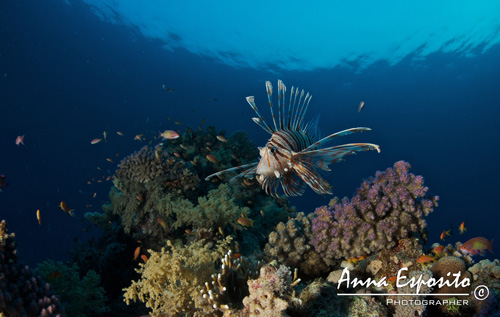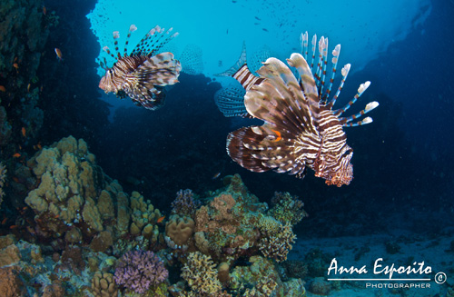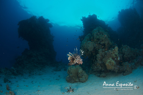Eccomi dunque sott'acqua con i miei compagni e la mia macchina fotografica, siamo alla "prova del nove". Prima di tutto dobbiamo pensare all'assetto, non è così scontato con un apparecchio fotografico. Un’altra cosa di cui mi sono resa conto è che mentre si fotografa si tende ad isolarsi e si presta meno attenzione al compagno d'immersione. Decido quindi di parlarne con Philippe e insieme raggiungiamo un compromesso, lui guarda me e si arma di "santa pazienza" ... Sono fortunata, non potevo avere un Buddy migliore. L'immersione è tranquilla, senza corrente e con spunti molto stimolanti. Subito due Lion Fish nuotano incuriositi verso di me, guardo la mia macchina fotografica e comincio a scegliere le migliori impostazioni, F8 e 1/50 dovrebbe essere la scelta corretta, inizio a scattare e loro, per nulla intimoriti dalle mie attenzioni sembrano volersi mettere in posa per me. Alla fine ho fatto un sacco di foto, le riguardo rapidamente, direi che sono soddisfatta.
