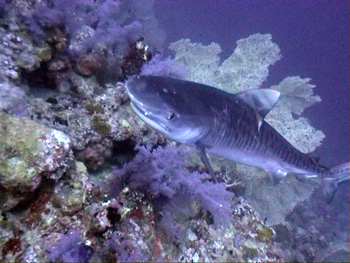 sulla punta del plateau. Si materializza nuovamente un grosso squalo che ci