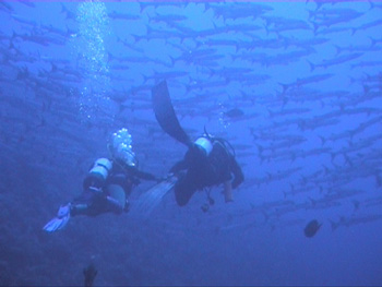 solitari, napoleoni, tanto pesce di barriera. Gorgonie di 3-4 metri di diametro.