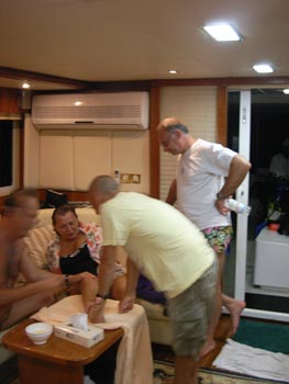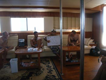 ormeggiati a Gotha Sharm. Massimo (capo carismatico e tour leader della crociera,